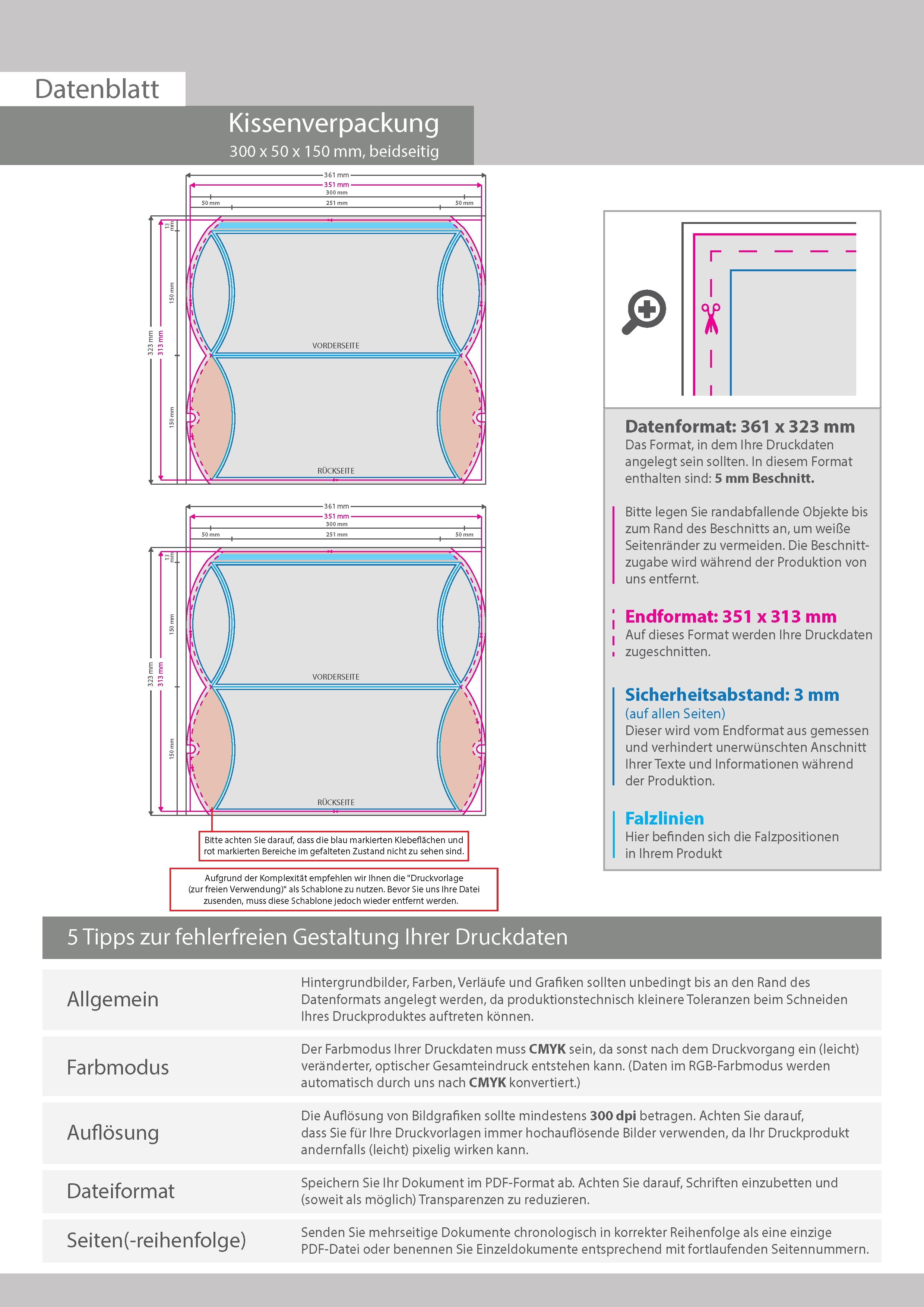 Kissenverpackung (30 cm x 5 cm x 15 cm) beidseitig bedruckt 4/4-farbig