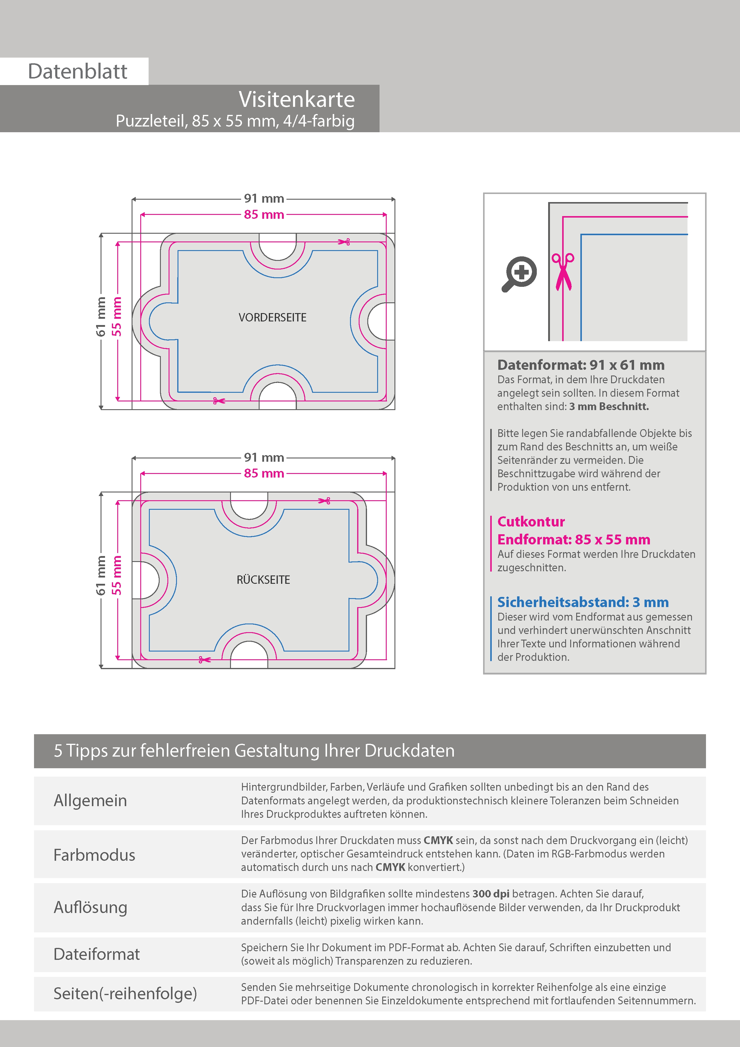 Visitenkarte Puzzleteil, 85 x 55 mm, 2-seitig, 4/4-farbig CMYK